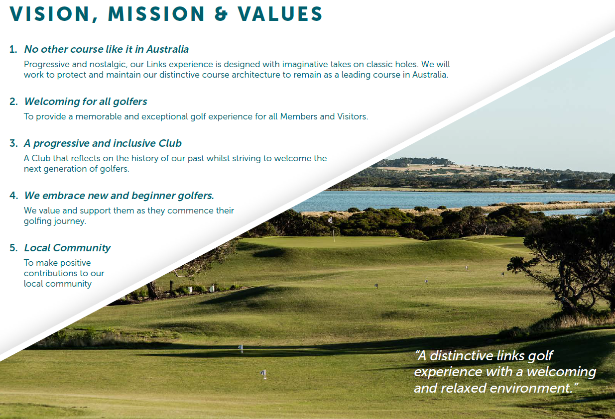 Soon after the new Strategic Plan was adopted, the Executive Committee developed the Vision, Mission & Values Statement – see pictured below. This Statement combined with the Strategic Plan have given the Members a clear path for what the Club wants to achieve and how it conducts itself in pursuit of its goals. This process has been critical to align Members through this period of immense change.